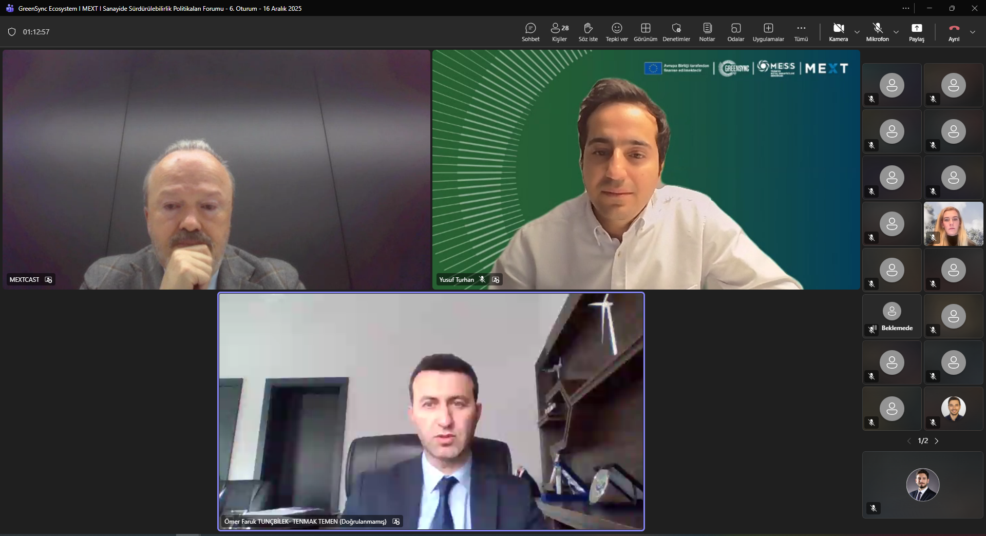 Bu kapsamda, MESS koordinatörlüğünde imalat sanayimizin yeşil dönüşüm sürecine stratejik katkı sağlanması ve sektörün sürdürülebilirlik temelli dönüşümünün desteklenmesi amacı ile Avrupa Birliği Katılım Öncesi Mali Yardım Aracı (IPA III) destek programı kapsamında fonlanan “GreenSync Ecosystem: Connecting the Manufacturing Ecosystem for a Sustainable Future” projesi yürütülmektedir.